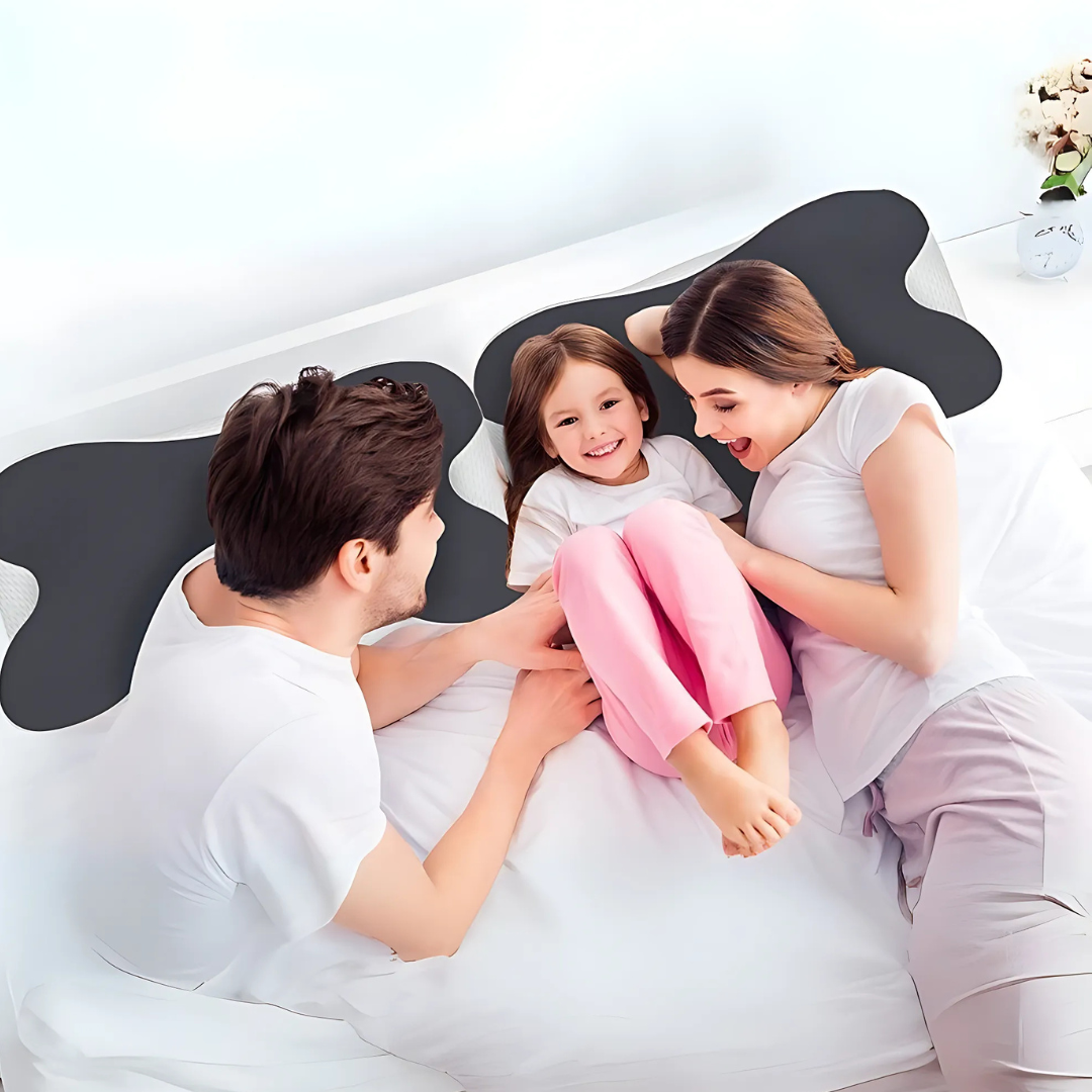 By keeping the head and neck in proper alignment, it helps open your breathing passages and reduce airway obstruction, improving airflow and oxygen circulation, which in turn eliminates snoring and sleep disruption.